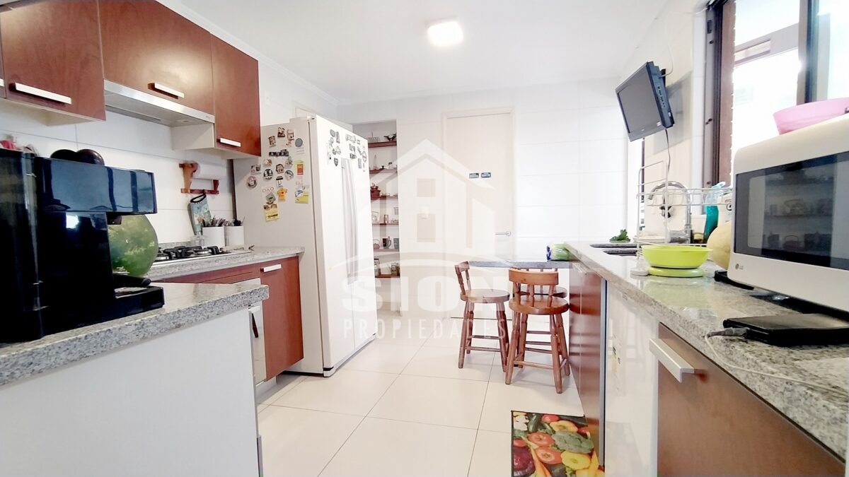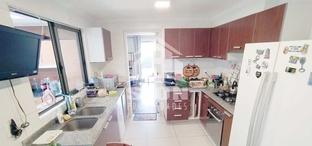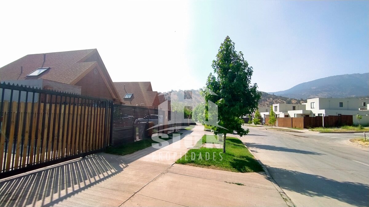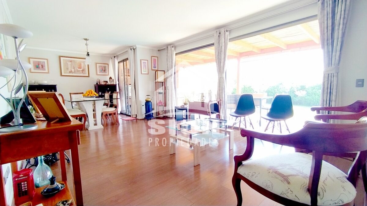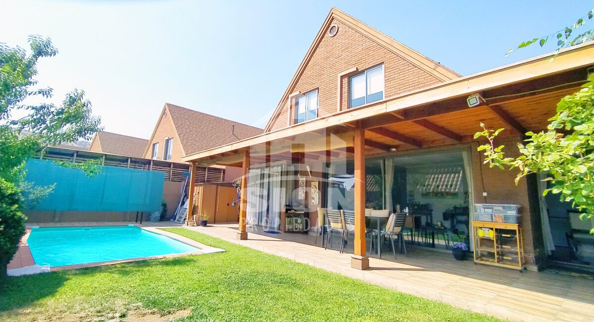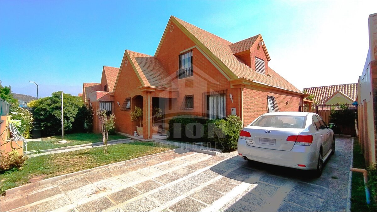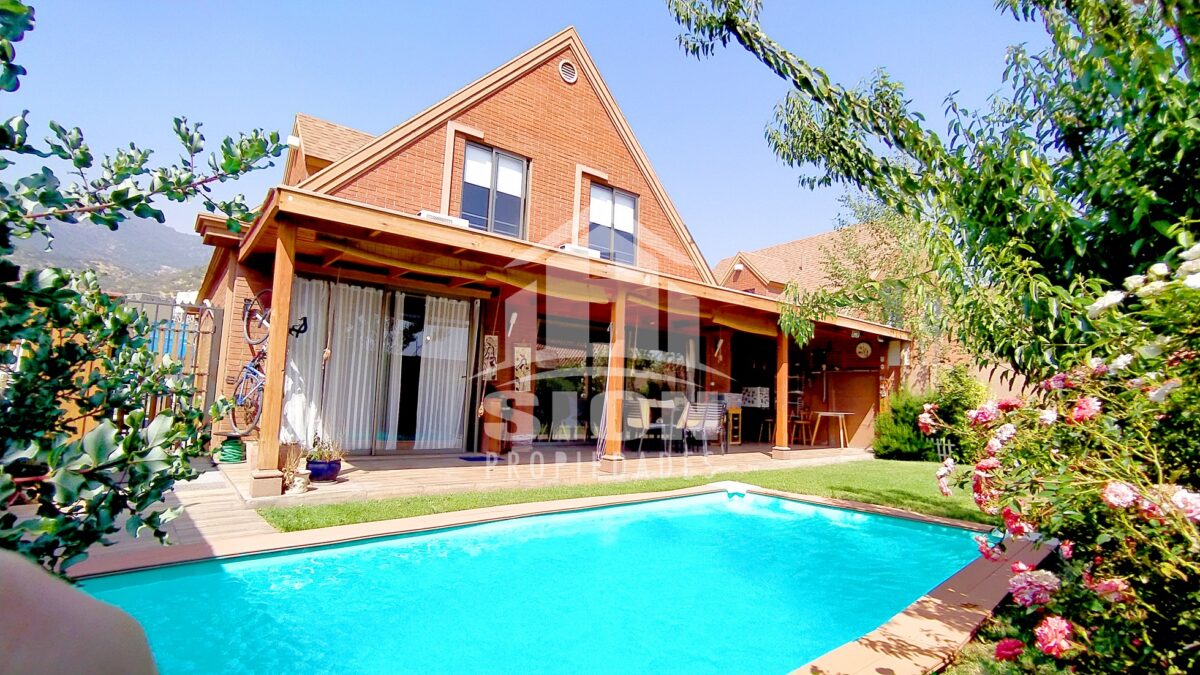 Acogedora casa de 2 pisos, estilo alpino. Cuenta con 5 dormitorios y 4 baños, living comedor bastante cómodos en espacio compartido, con salida a terraza y piscina. Amplia cocina amoblada con cubierta de granito, bien iluminada. Finas terminaciones y material sólido. Se encuentra ubicada en el tranquilo y seguro barrio “El Huinganal”. Calles principales: Camino del Chin, Camino El Huinganal, Camino Los Espinos. Cuenta con una superficie total edificada de 152 m2, emplazada en un terreno de 330 m2.